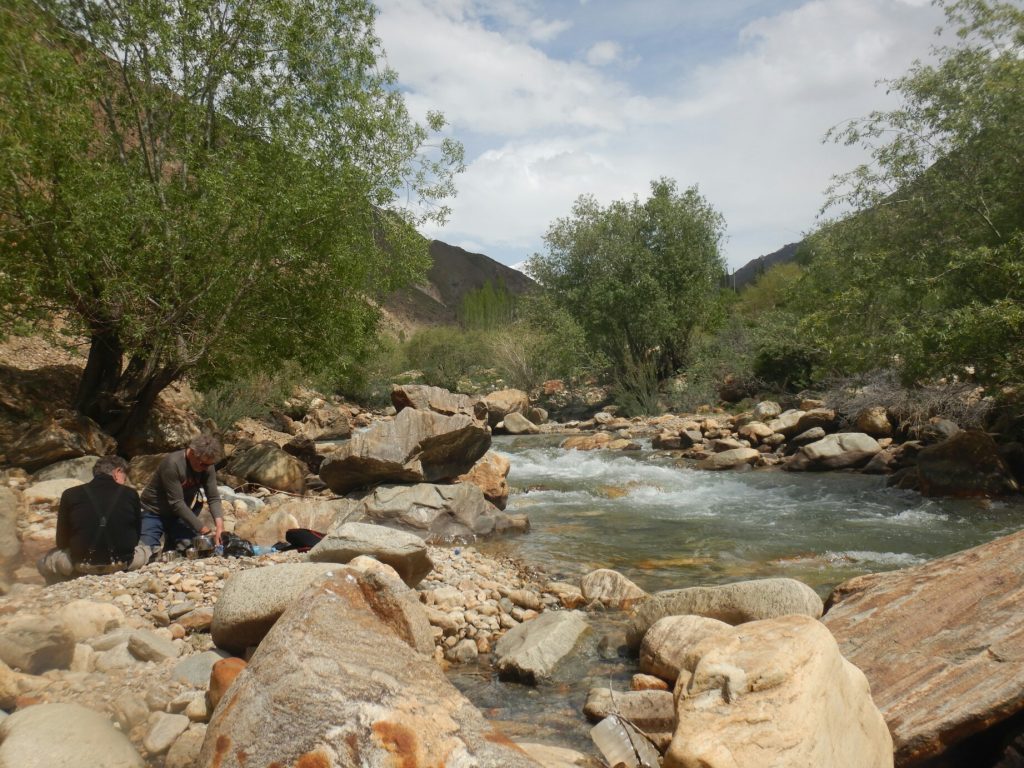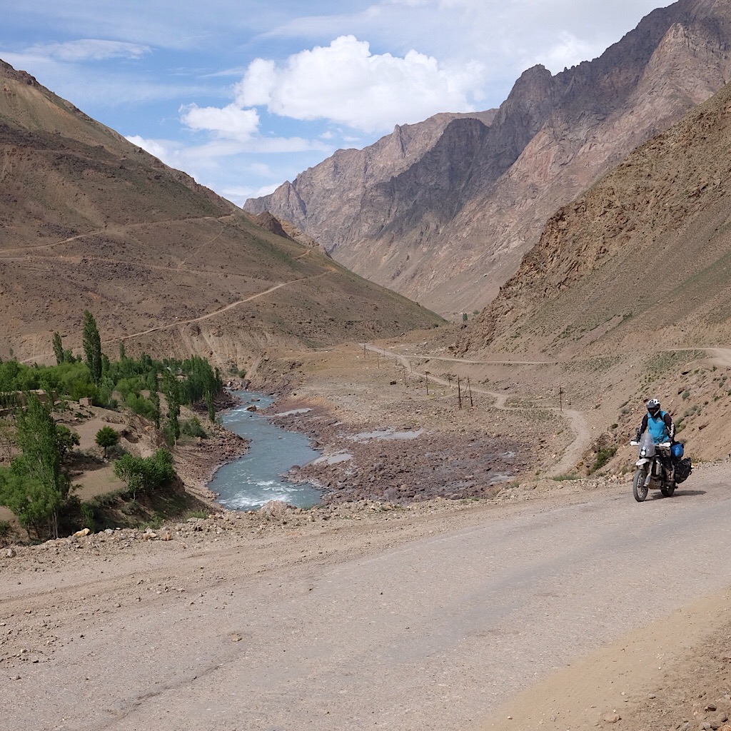 De eigenaar van de shop komt net aanlopen met zijn armen vol spullen. Die legt hij ter plekke op de grond en buigt zich over de motor. Een grote,vriendelijke glimlach en hij begrijpt de bedoeling. Hij rent zijn shop in en komt met een doos met boortjes en tapjes de shop weer uit. Kiepert de doos op de grond en zoekt wat hij nodig heeft. Wij hopen een linkse tap. Die boor je in de kapotte bout en de bout komt vanzelf mee naar buiten gedraaid. Fout. Sinds Kirgiezen het linkse verleden van zich afgeschud hebben: geen links draad meer in dit land 🙂