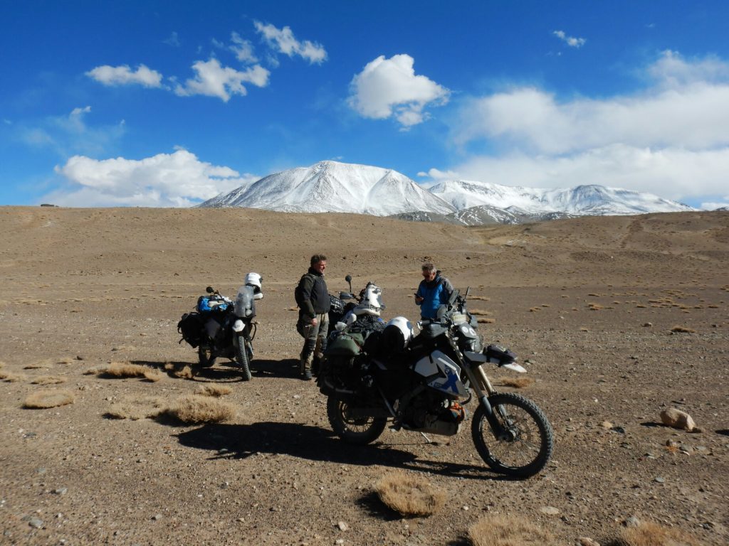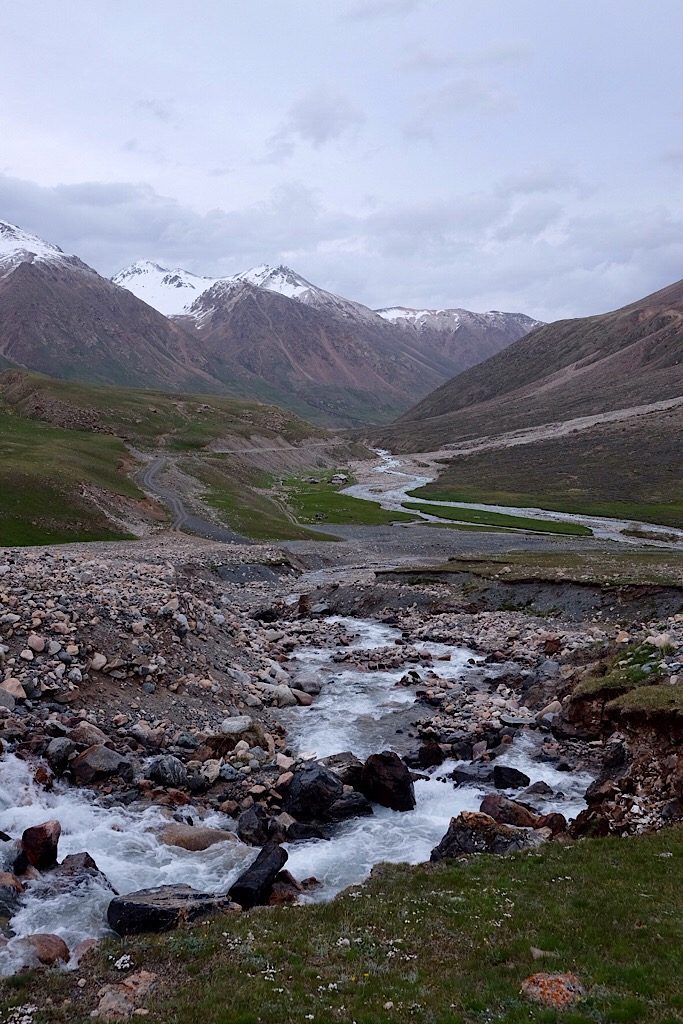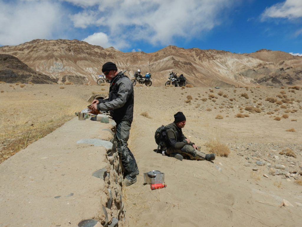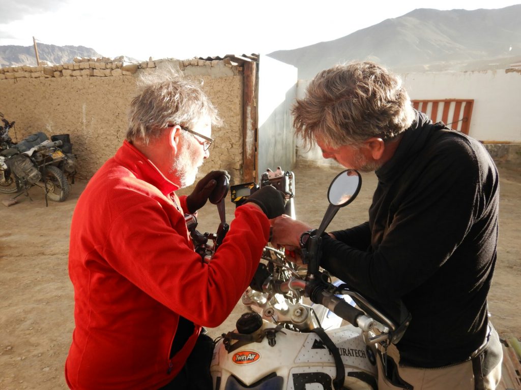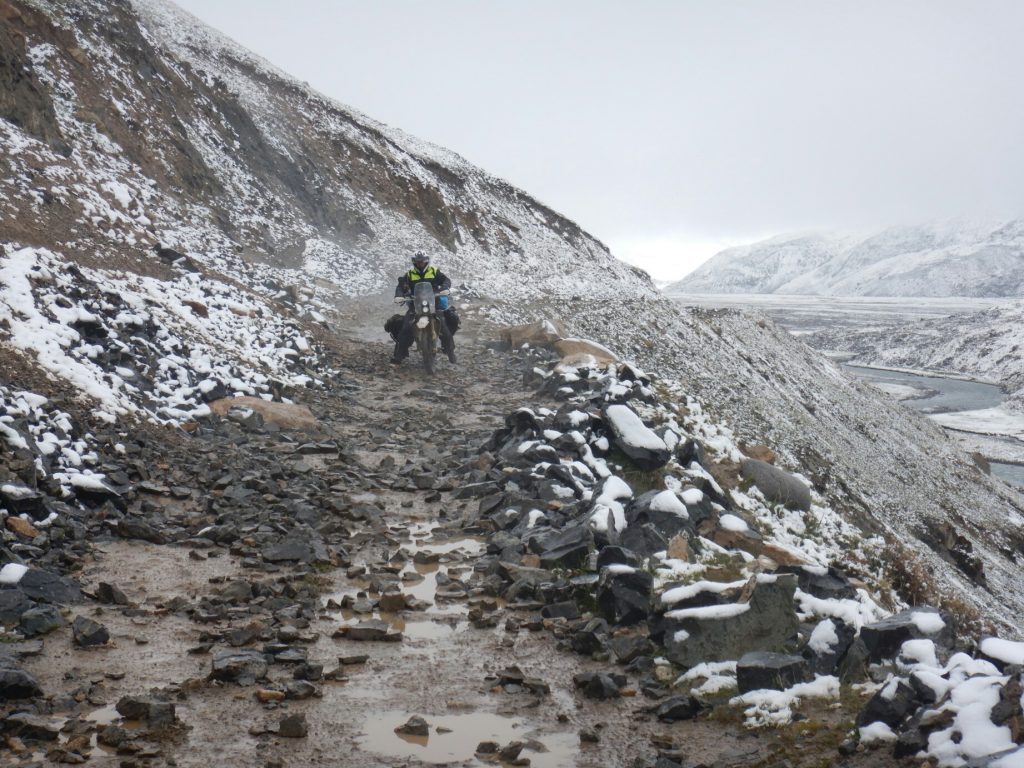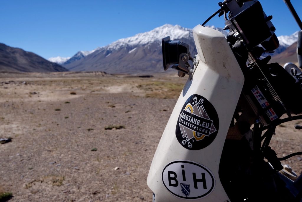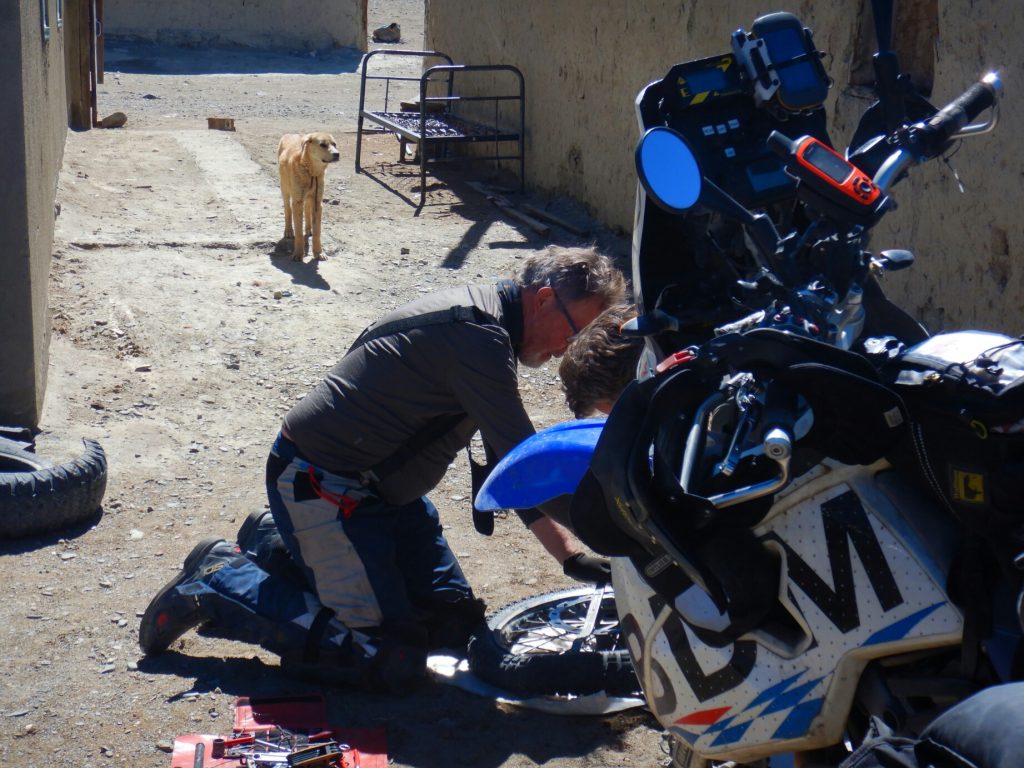 Daar bepakken we de motoren, doen de motorkleding aan en vertrekken. De bedoeling is de tocht te vervolgen langs Issy Kul, maar dan langs de noordkant. En waar we denken dat het leuk is, duiken we een kloof in. Daarbij baseren we ons op de vertrouwde hulpmiddelen:open street map, I-Overlander en de normale landkaart.
