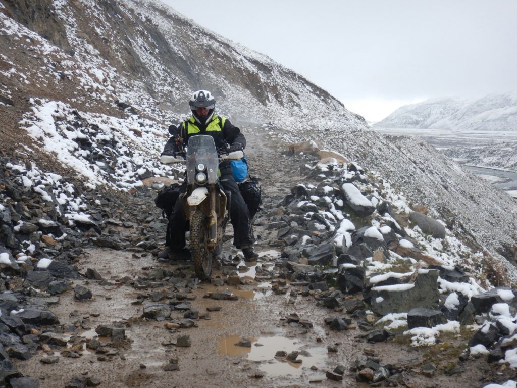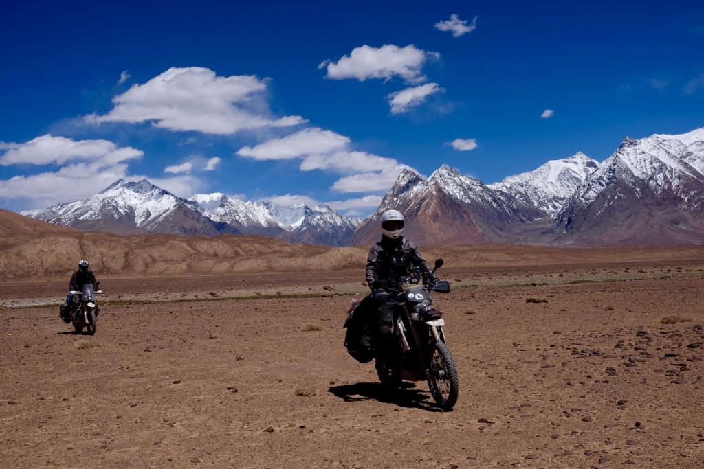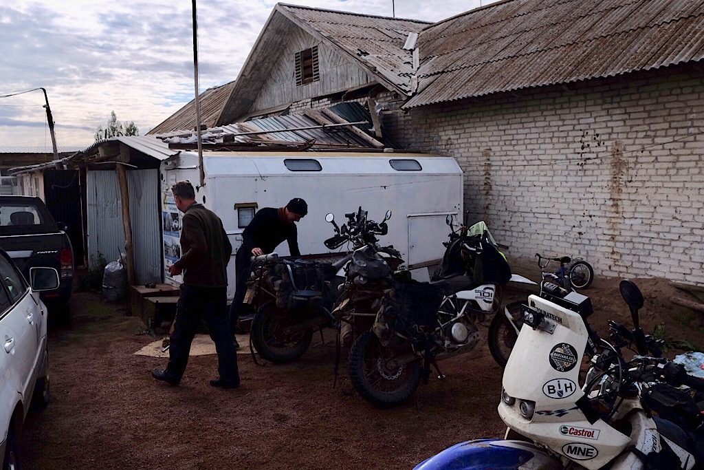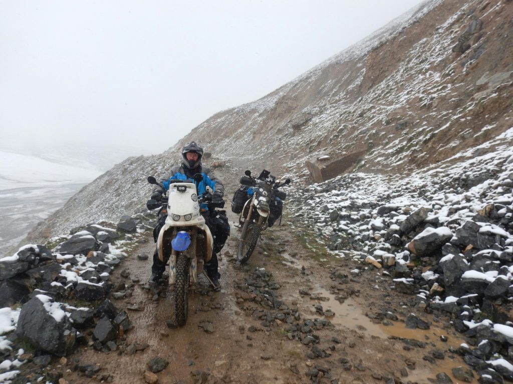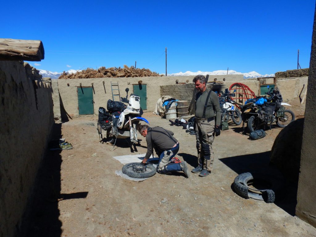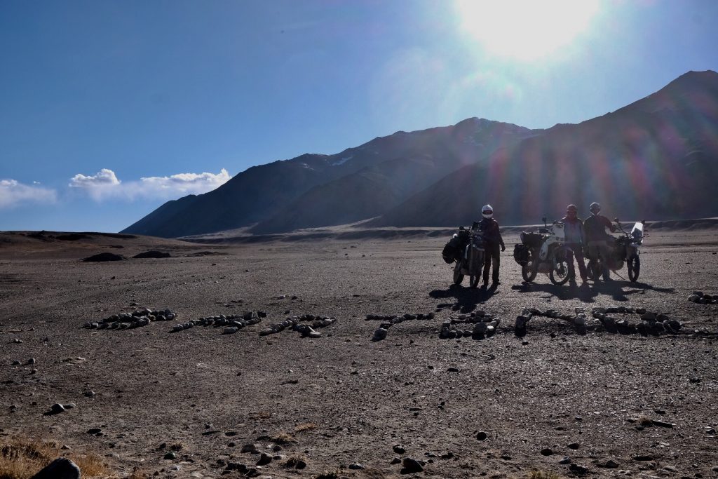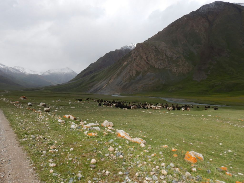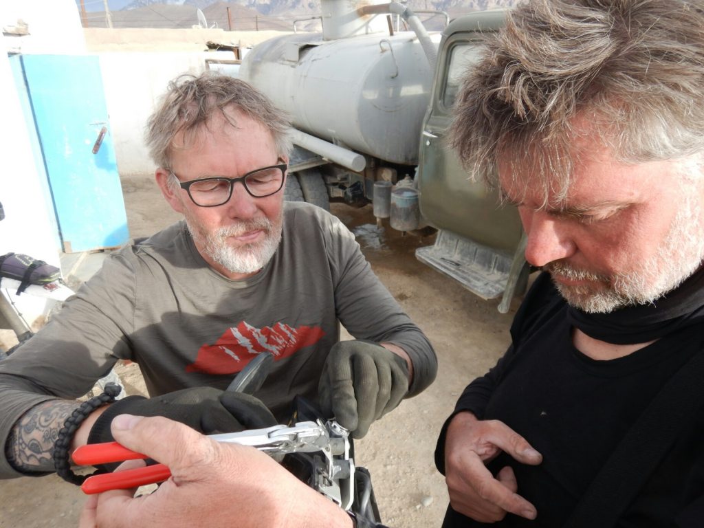 Daar bepakken we de motoren, doen de motorkleding aan en vertrekken. De bedoeling is de tocht te vervolgen langs Issy Kul, maar dan langs de noordkant. En waar we denken dat het leuk is, duiken we een kloof in. Daarbij baseren we ons op de vertrouwde hulpmiddelen:open street map, I-Overlander en de normale landkaart.