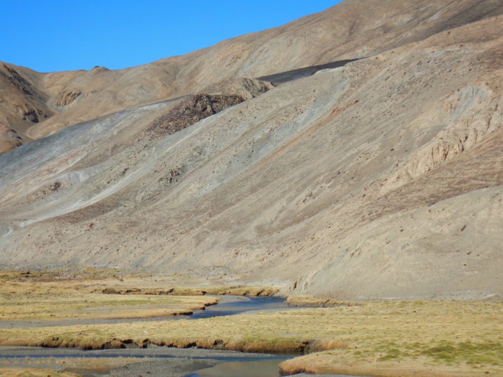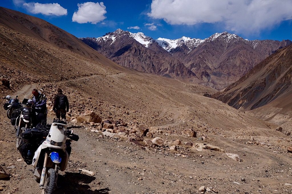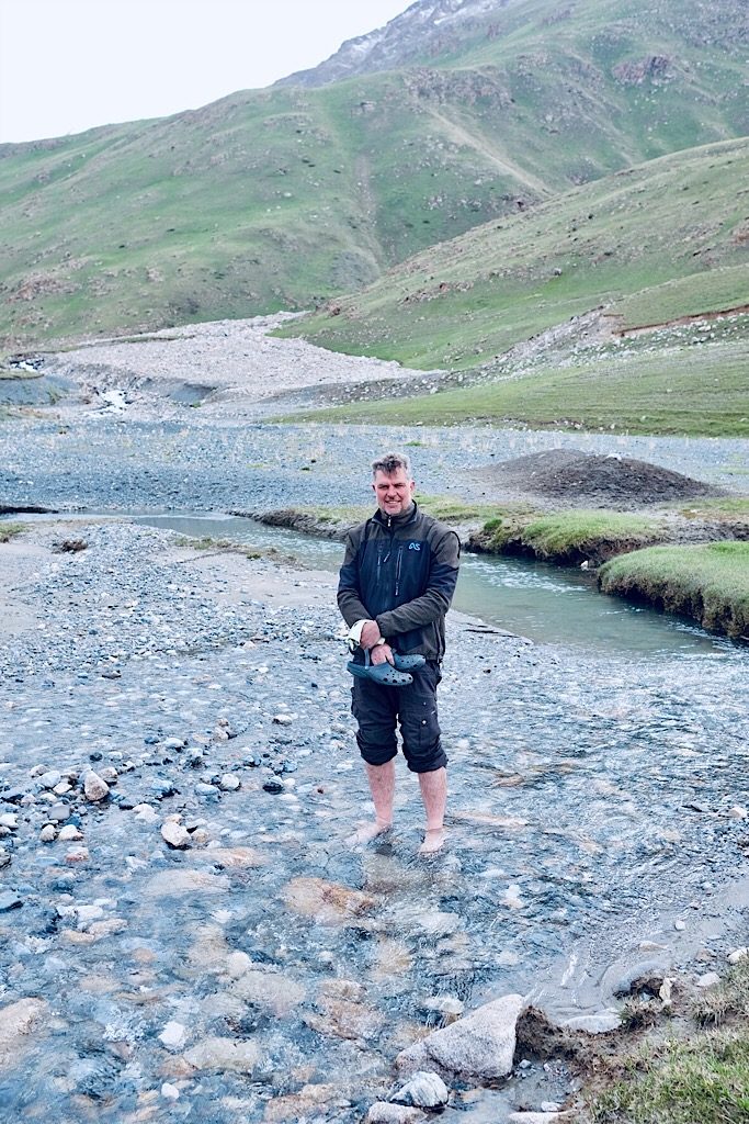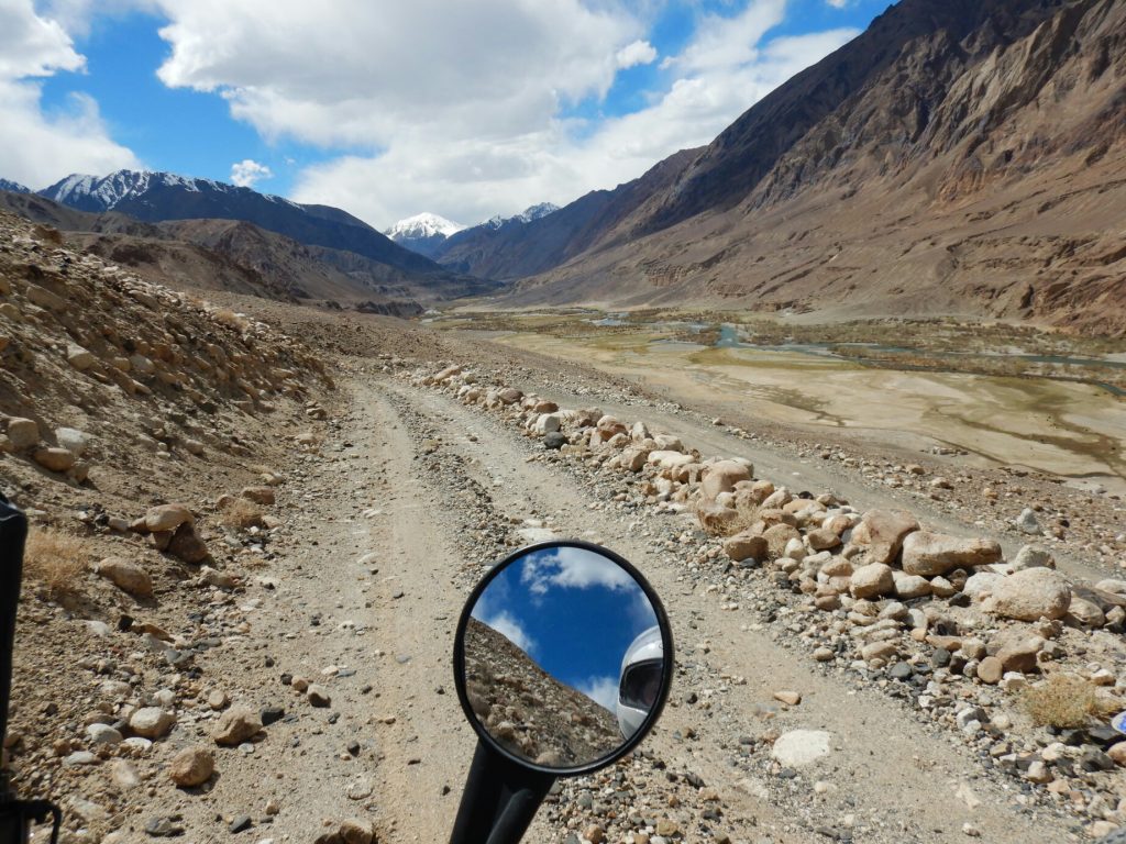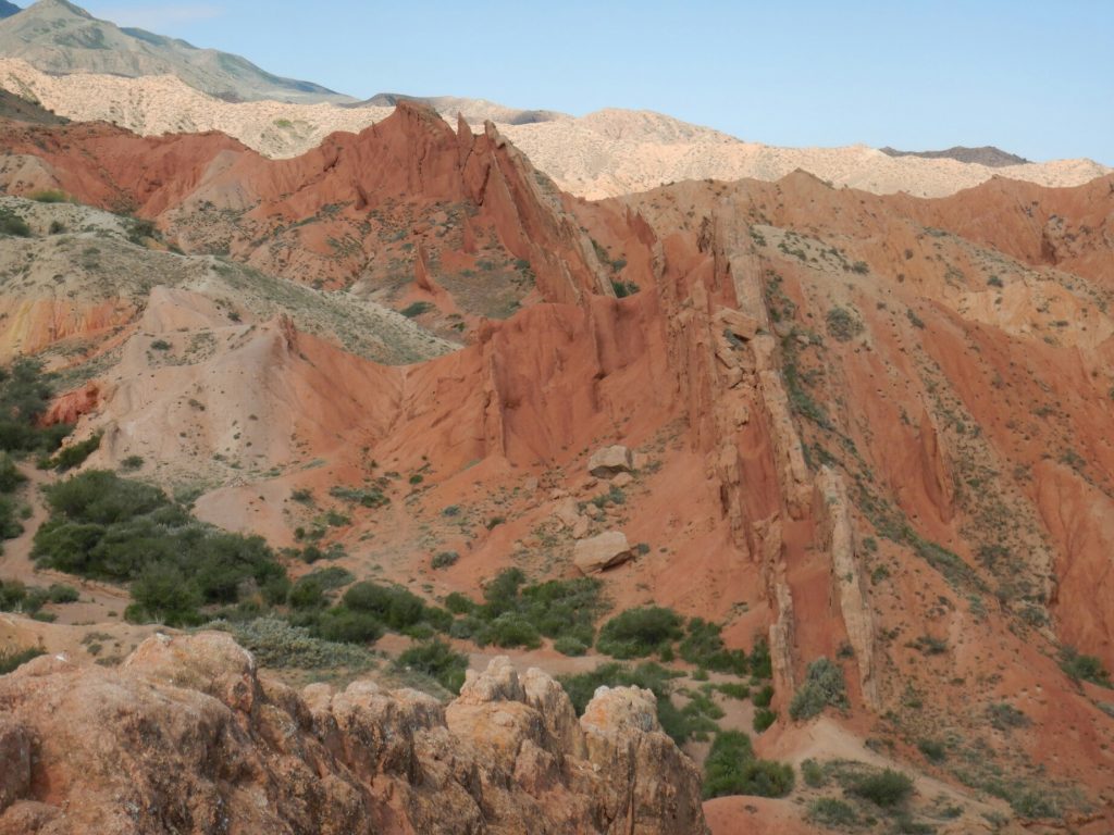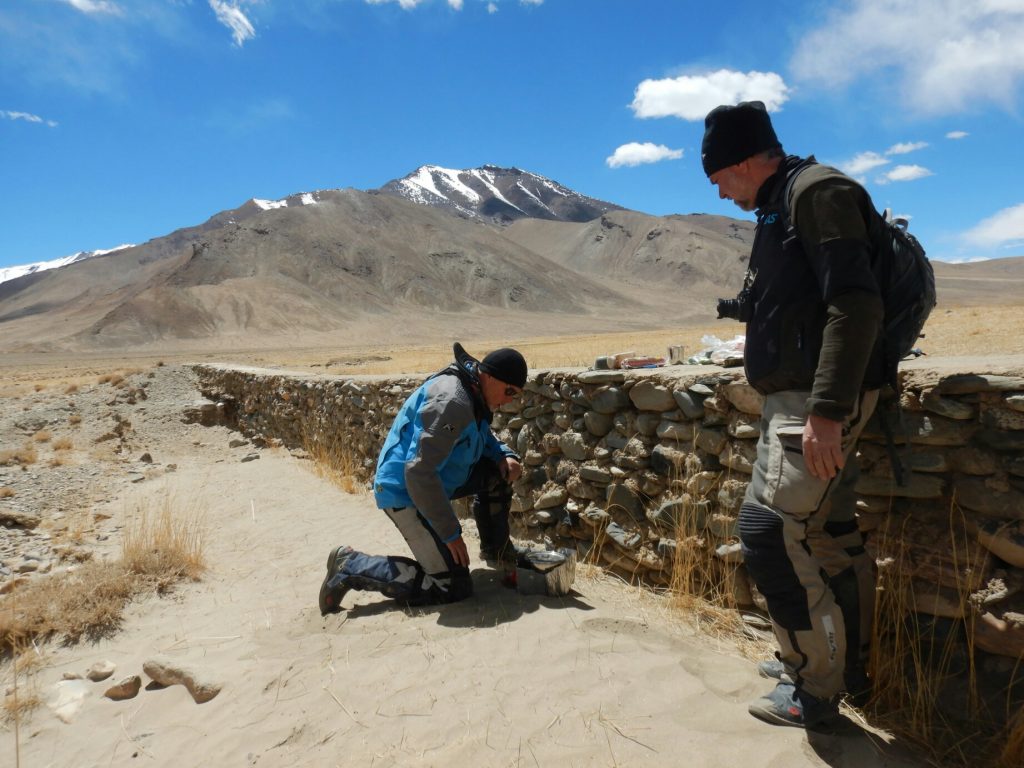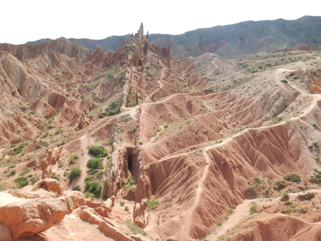 Daar bepakken we de motoren, doen de motorkleding aan en vertrekken. De bedoeling is de tocht te vervolgen langs Issy Kul, maar dan langs de noordkant. En waar we denken dat het leuk is, duiken we een kloof in. Daarbij baseren we ons op de vertrouwde hulpmiddelen:open street map, I-Overlander en de normale landkaart.