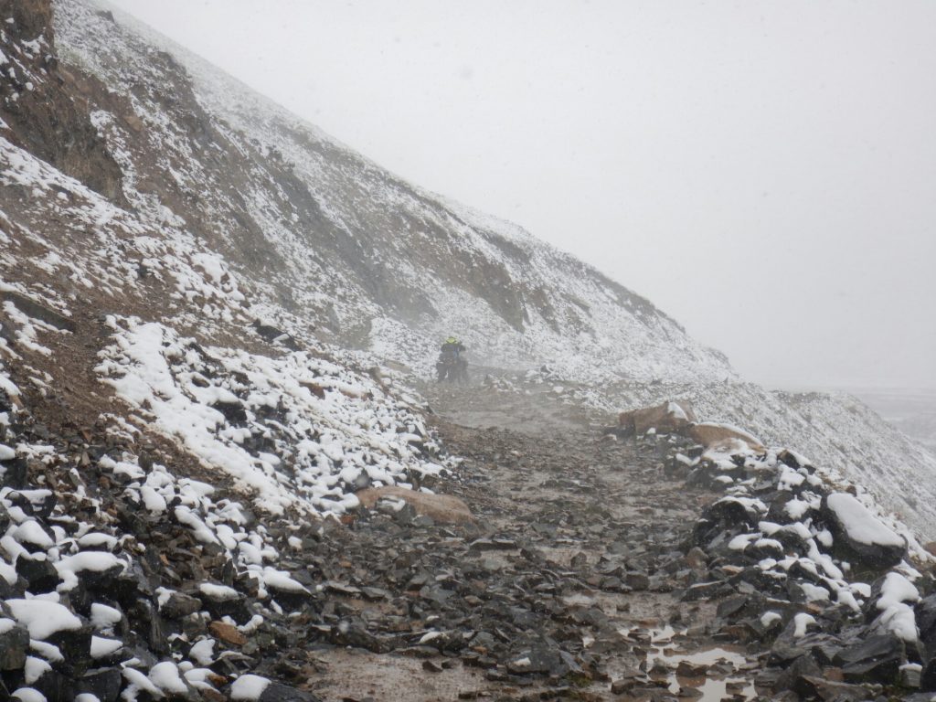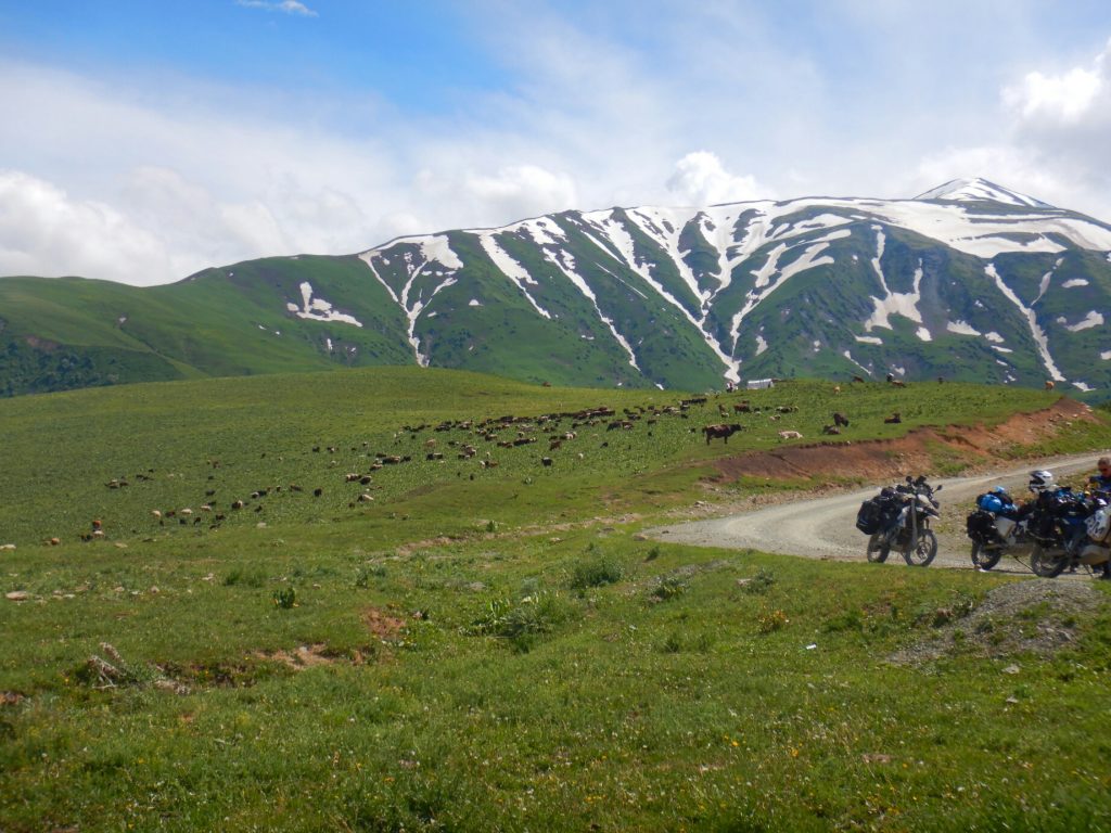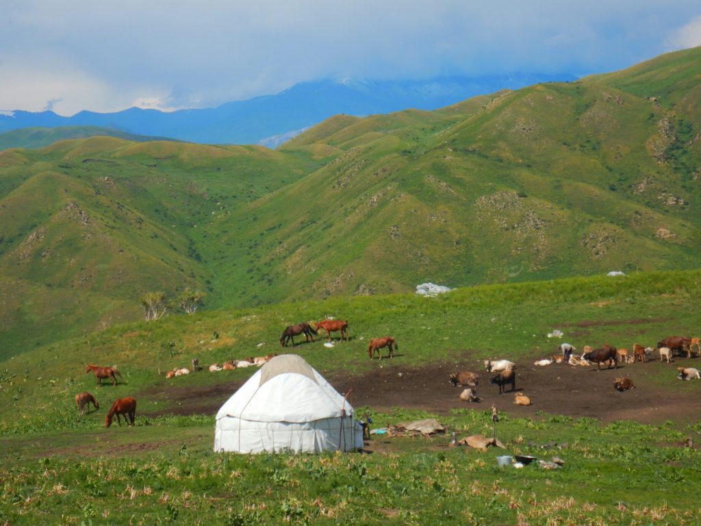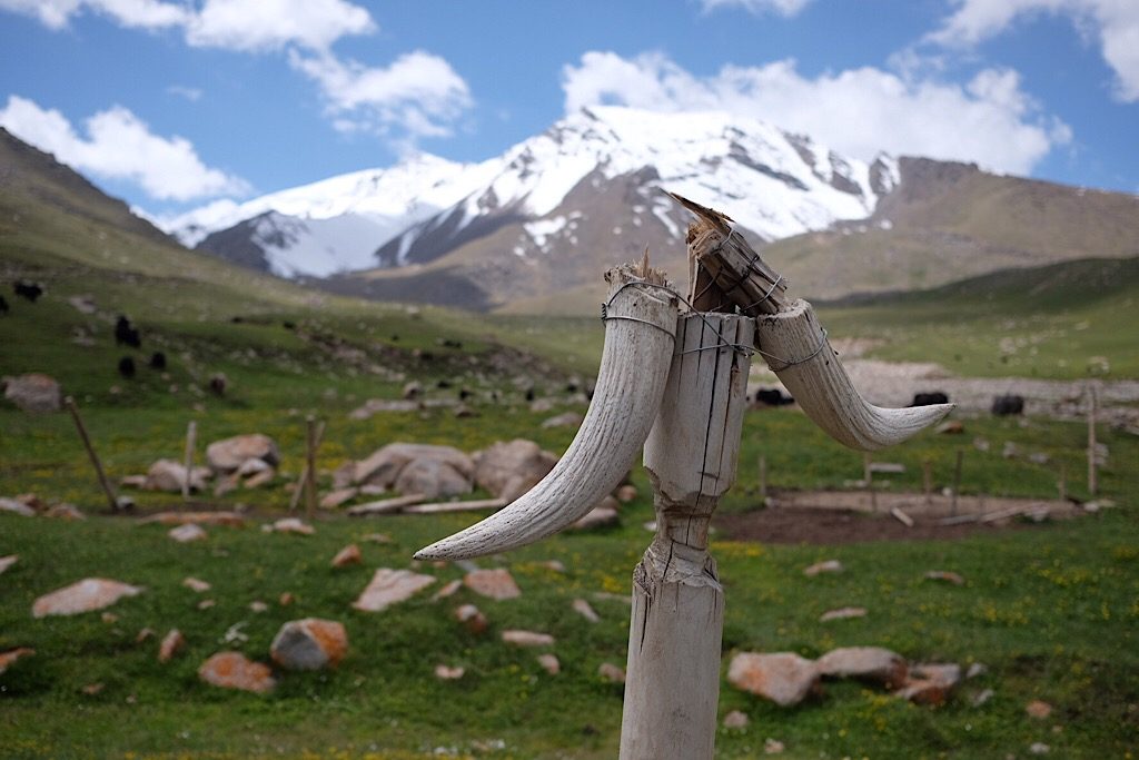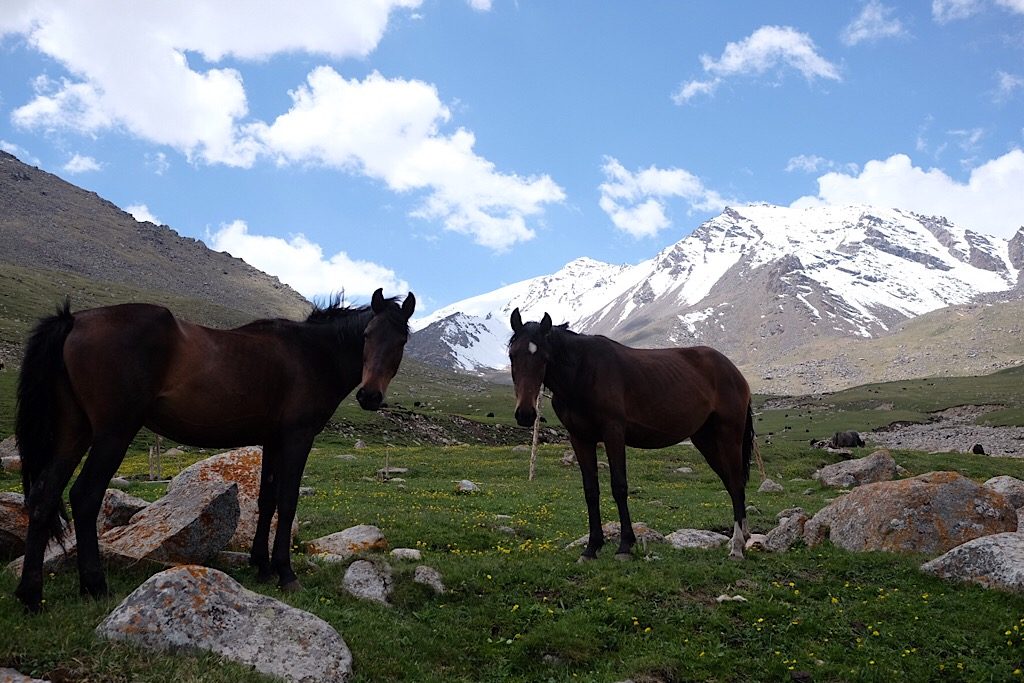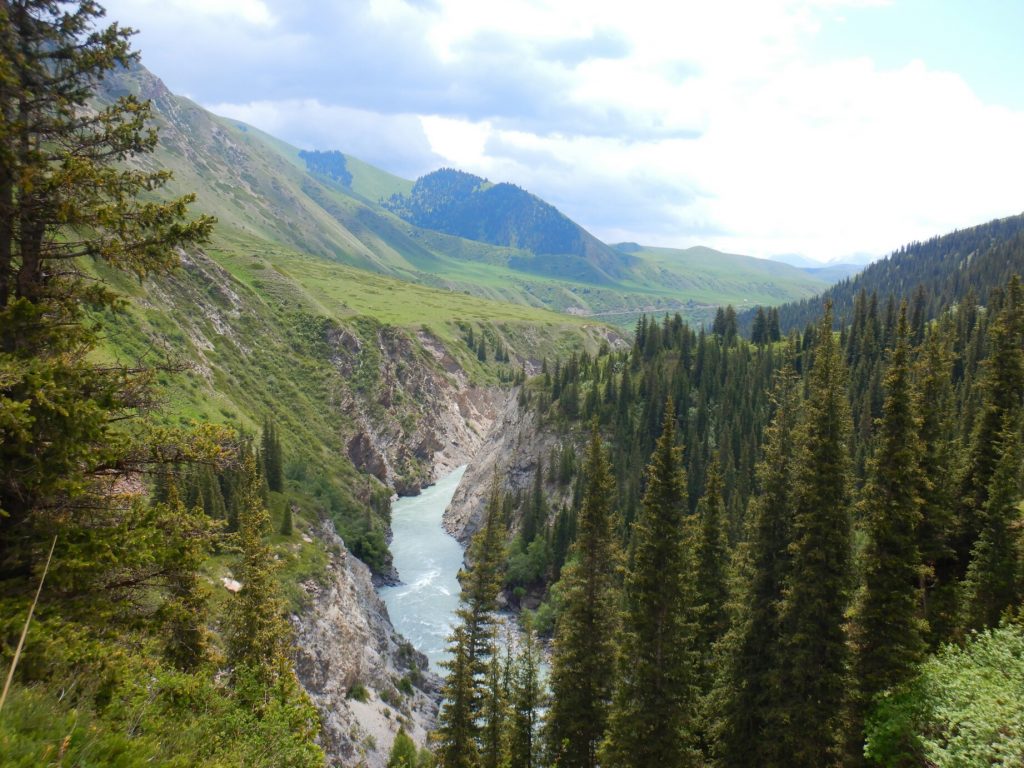 We zijn echter niet de enigen dat vinden. Elk stukje waar iets kan staan, is bezet. Met auto’s, tenten, yurts, barbecues, paarden, verhuur van paarden, afval. Van de schoonheid blijft niet veel over dan een rommelig en vervuild geheel. We rijden langzaam door de kloof om de dieren niet teveel te laten schrikken van onze motoren. Op het pad rijden ook jongeren op de huurpaarden. Dat matcht niet met onze rijstijl. Waar wij altijd zoveel mogelijk ruimte laten tussen ons en de paarden, rijden de jongeren midden op de weg en blijven daar. Of komen met het paard onze kant op. Gezien de onervarenheid van de berijders is het onduidelijk of het paard gewoon z’n dagelijkse gangetje sjokt, of dat de jongeren proberen met het paard bij ons te komen. Vervelend.