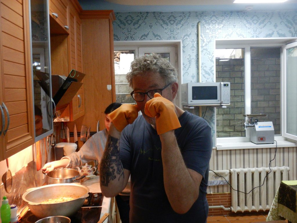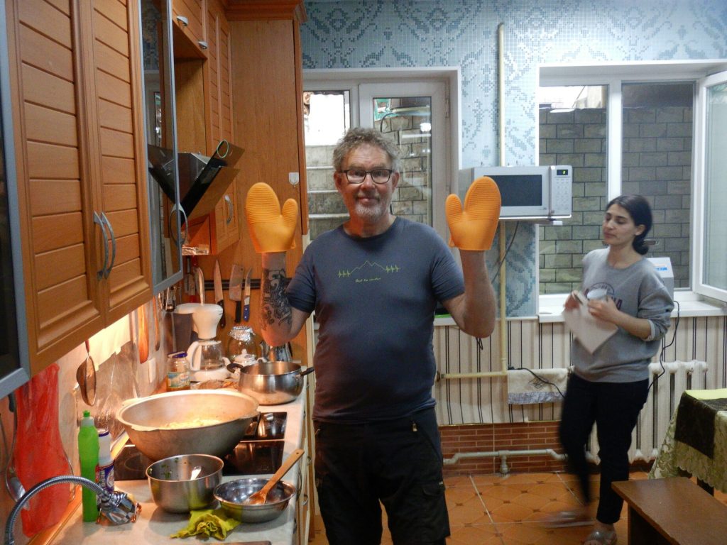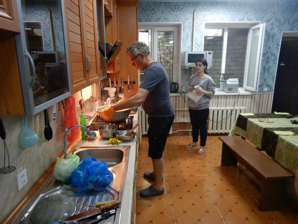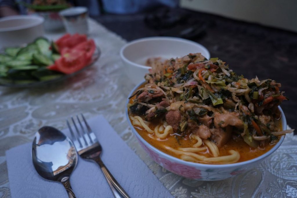 Eenmaal aangekomen blijkt de yurt in geen velden of wegen te bekennen. Wel een oude hut met vier slaapkamers en een keukentje. Gekookt wordt er op gas uit een fles. De hut wordt verwarmd door het verbranden van gedroogde koeienpoep. Bij binnenkomst worden we allerhartelijkst ontvangen met thee en een kom soep. We mogen naast de kachel zitten om een beetje op te drogen en weer wat warmer te worden. Wat een genot.