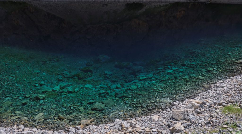 We rijden stug door, door een prachtig landschap. Tenminste, dat zou het volgens de beschrijving moeten zijn. Wij zien er niks van. Deels omdat de natte, modderige stenen superglad zijn en het rijden al onze concentratie vergt. En deels omdat we gewoon in de mist rijden en geen 100m ver kunnen kijken.