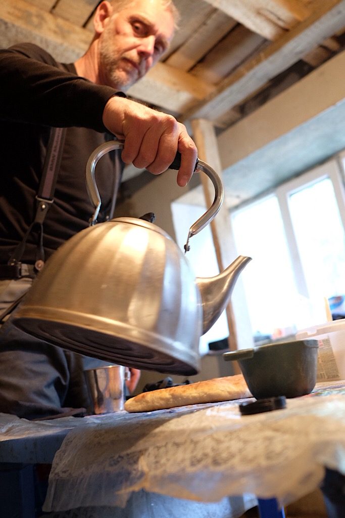 We ontbijten met griesmeelpap, brood en thee. Grappig, griesmeel hebben we al in geen jaren meer gegeten.