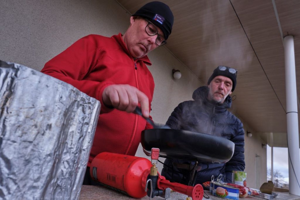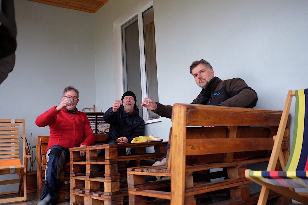 Heerlijk om even de natte zooi uit te kunnen hangen onder de veranda, op de kachel, etc. We besluiten hier twee nachten te blijven en weer even op adem en temperatuur te komen.
