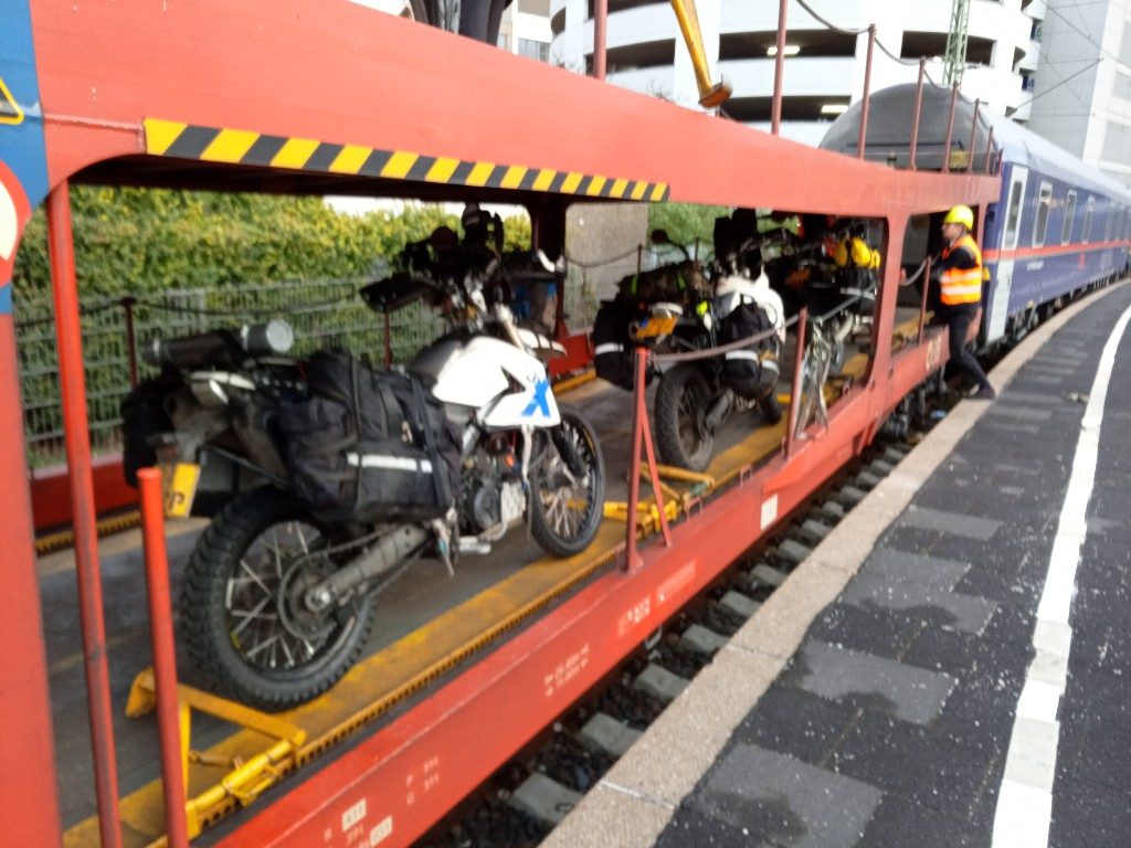 3 April, Motoren van de trein af gaat sneller dan erop. Wanneer we onder een voorjaarszonnetje wegrijden blijkt dat geen voorbode voor gunstig weer. Al snel worden we door regen en vooral vervelende bergwind geteisterd.